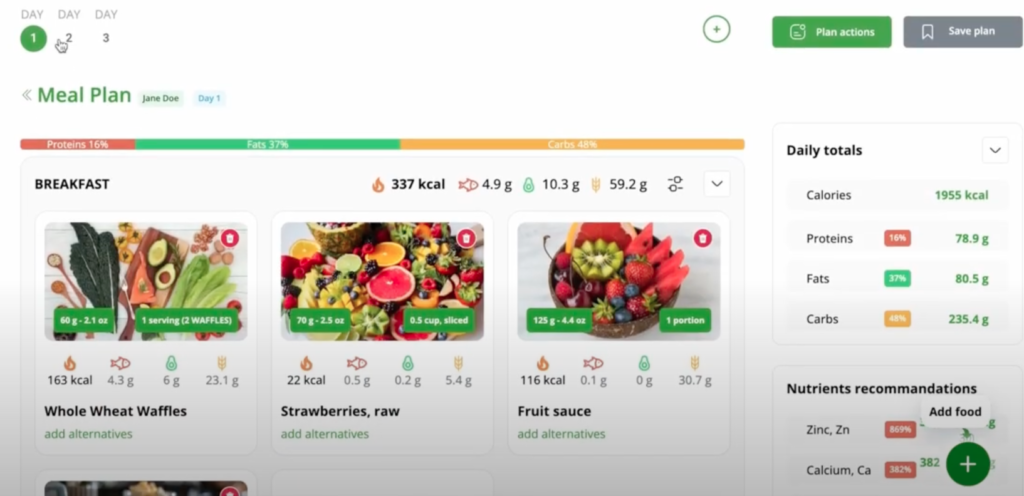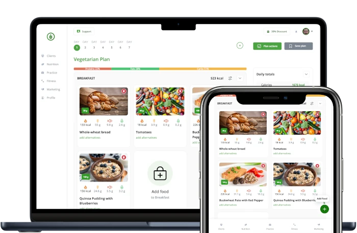 Easily create unique meal plans for your clientele. Make daily meal schedules and tweak them in tandem with your customers’ demands. Alternatively, use our avant-garde AI meal planner to instantly devise a diet plan with the help of AI or formulate portion-based meal plans.