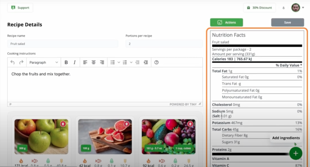 Enlist and evaluate delicious recipes and generate nutrition labels. Maximize great results by studying the diets you create. Encourage your clients to maintain food logs for detailed analysis. Examine any dish or food diary using our Comprehensive reporting tool to view diagrams with macros, fats, carbs, energy, protein share, micronutrient totals, and comparisons to the recommended dietary allowance.